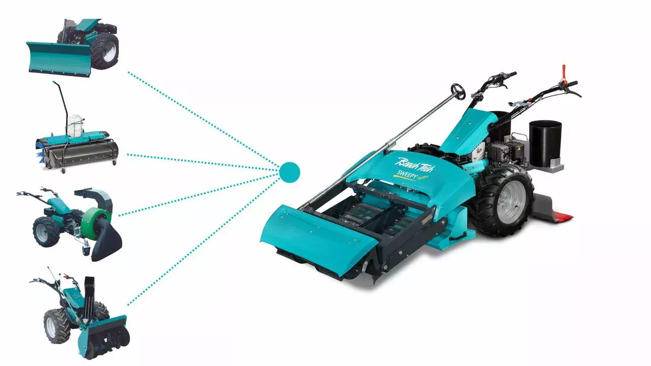 Gracias al sistema de enganche rápido, este limpiaplayas se convierte en un instante en un cortacésped, una quitanieves o muchas cosas más.